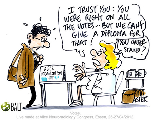 Jean Philippe Legrand or Aster creates live cartoons during Alice the Course in a matter of seconds. His sketches capture the essence of a discussion from a less conventional point of view, with a lots of humor. His refreshing illustrations are highly appreciated and enlighten the otherwise serious atmosphere. Here are some of his cartoons from Alice the Course 2012.