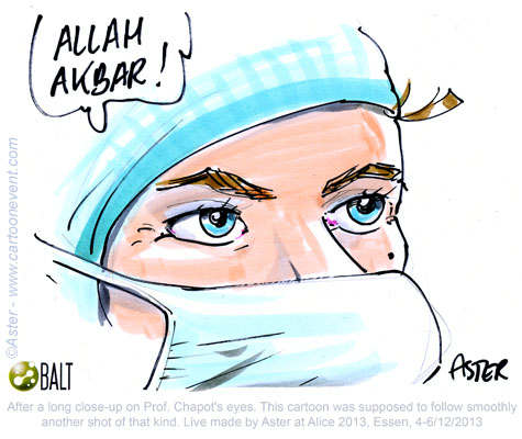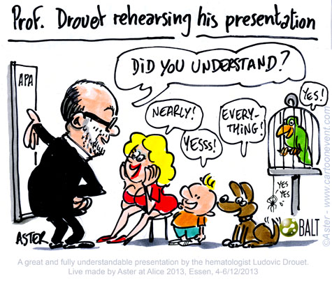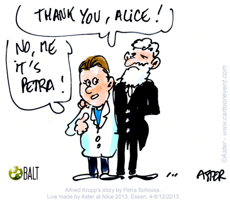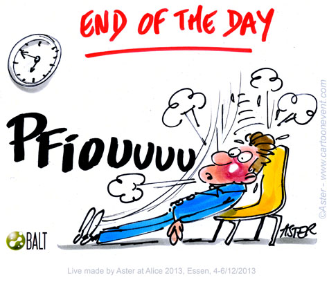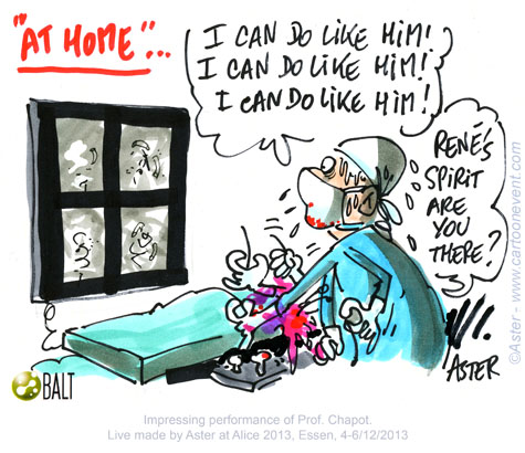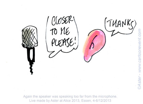 Jean Philippe Legrand or Aster creates live cartoons during Alice the Course in a matter of seconds. His sketches capture the essence of a discussion from a less conventional point of view, with a lots of humor. His refreshing illustrations are highly appreciated and enlighten the otherwise serious atmosphere. Here are some of his cartoons from Alice the Course 2013.