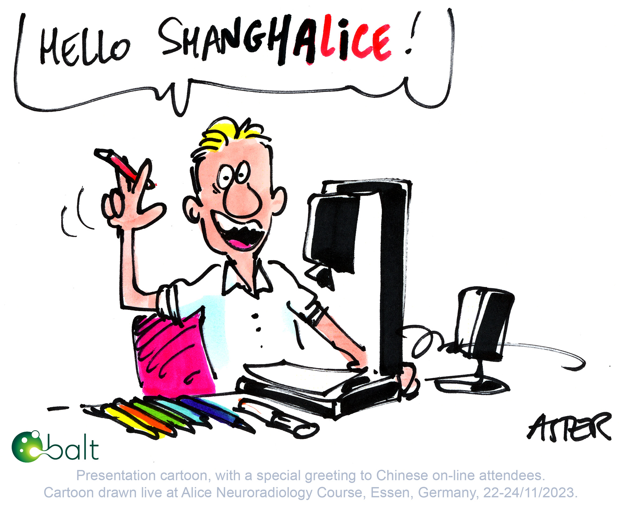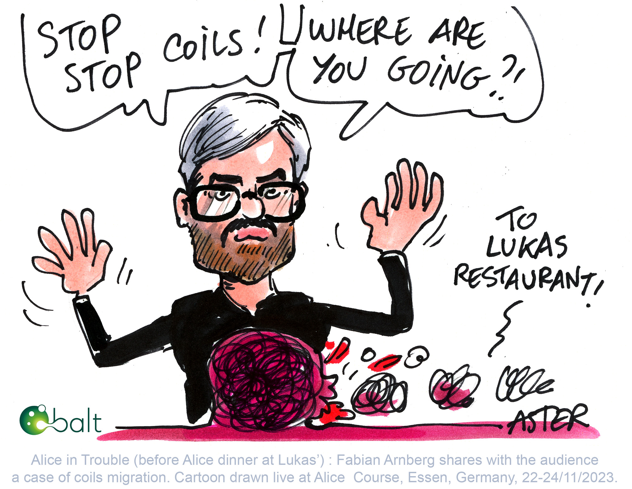 Jean Philippe Legrand or Aster creates live cartoons during Alice the Course in a matter of seconds. His sketches capture the essence of a discussion from a less conventional point of view, with a lots of humor. His refreshing illustrations are highly appreciated and enlighten the otherwise serious atmosphere. Here are some of his cartoons from Alice the Course 2023.