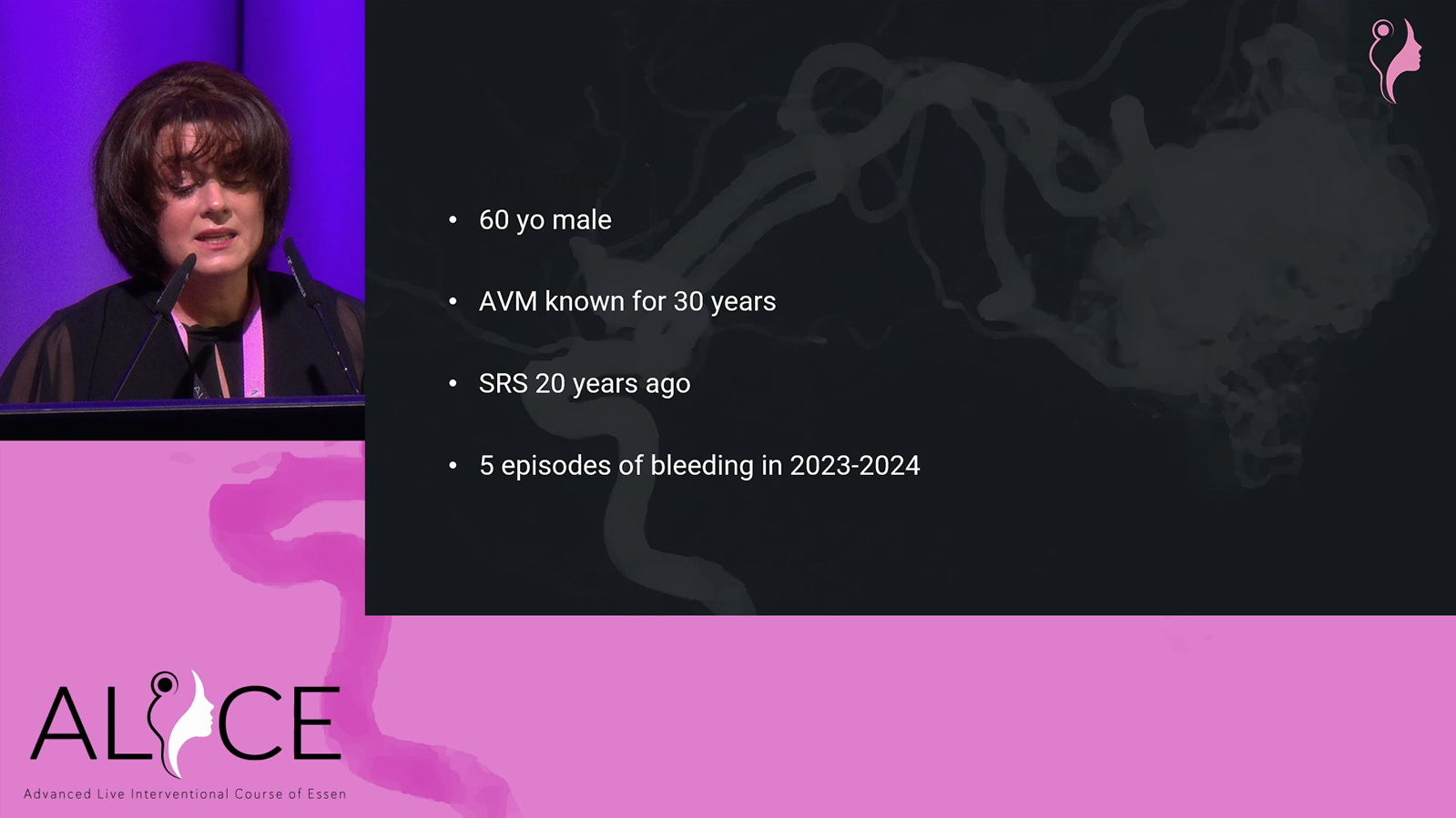 Deep ganglia AVM with several episodes of bleeding and multiple aneurysms on the single outflow vein, to be treated by transarterial pressure cooker with squid